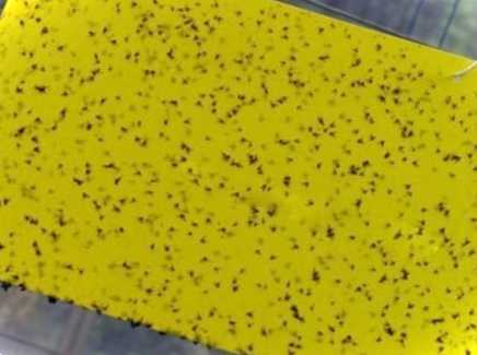 З цією метою можна використовувати звичайні липкі стрічки, які продаються в будь-якому господарському магазині та застосовуються для боротьби з мухами, або купити спеціальні жовті клейкі пастки. Необхідно такі пастки повісити поблизу уражених рослин, і періодично їх міняти, тому що липкий шар з часом підсихає, та й самих мушок на них вже буває достатньо.