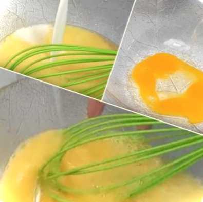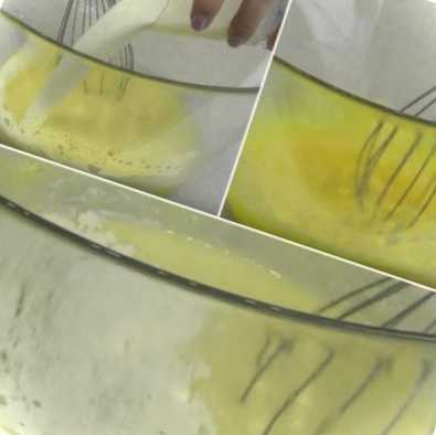Ставимо на вогонь чайник, щоб він скипів. Тим часом розбиваємо в глибоку чашку яйця, злегка збиваємо їх блендером. Додаємо до них цукор та сіль, знову збиваємо, щоб вони розчинилися в яйцях.