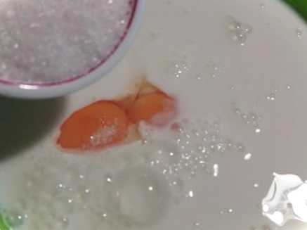 У велику миску виливаємо кисле молоко, додаємо до неї яйця, сіль, цукор.