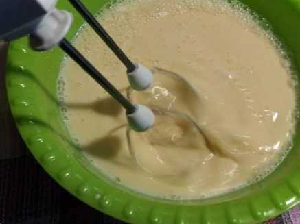 І все перемішуємо міксером на малій швидкості. Можна використовувати звичайний віночок. Головне, на цьому етапі просто перемішуємо продукти до однорідності.