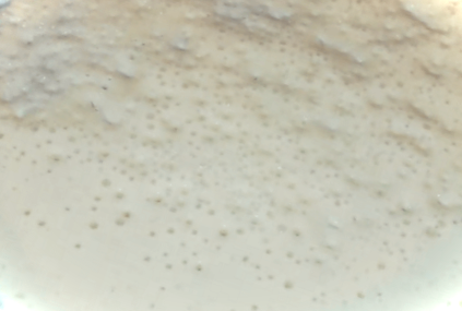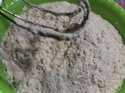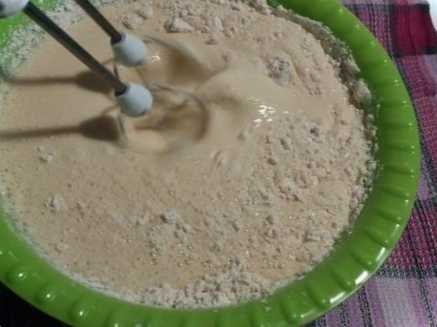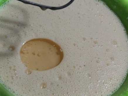 Виходить густе тісто, як на оладки. Розводимо густе тісто теплою водою, розмішуємо.