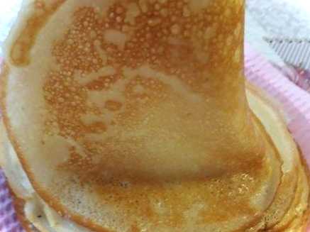 Тепер знаючи про користь такого корисного продукту, давайте займемося випічкою. Відкрию секрет. Щоб млинці вийшли тонкими, з дірочками, для цього треба тісто збивати довше. А якщо просто розмішати тісто до однорідності, то вони будуть більш щільними та товщими.