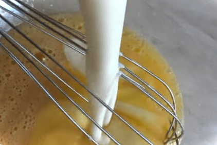 З'єднуємо яйця з цукром, щіпкою солі, додаємо ванілін на кінчику ножа і все добре розмішуємо віночком.
