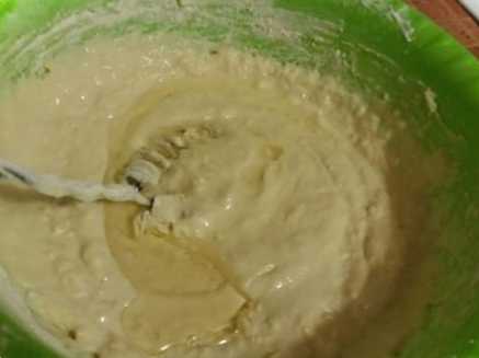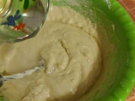 Тісто по консистенції має вийти як дуже рідка сметана. Залишаємо його на 10 хвилин набік, щоб тісто настоялось.