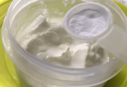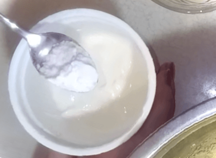 У сметану додаємо розпушувач (або соду, якщо вона кисла), перемішуємо.