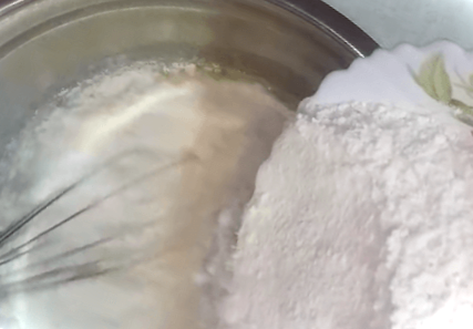 Поступово додаємо борошно, що просіює, одночасно перемішуючи суміш.