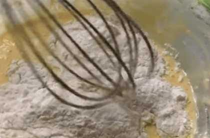 Потім до отриманої суміші поступово вводимо борошно, одночасно перемішуючи тісто, щоб не утворилися грудочки.