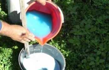 Приготуйте 2 пластмасових відра, в одному з них розводитимемо купорос, в іншому - вапно. У жодному разі для приготування розчинів не використовуйте залізні відра.