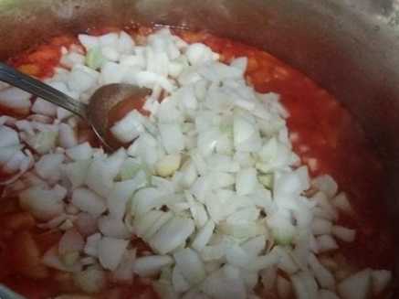 Через 20 хвилин варіння додаємо цибулю, перемішуємо, закриваємо кришкою і гасимо 10 хвилин.