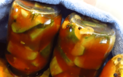 Дуже часто буває так, що втрачаємо момент і огірочки переростають. Що ж можна приготувати з них? Важливо, щоб шкірка у них була тонка, а насіння дрібне. Ми вже приготували з вами огірки в гірчичній затоці (попередній рецепт), а зараз приготуємо в томатній затоці.