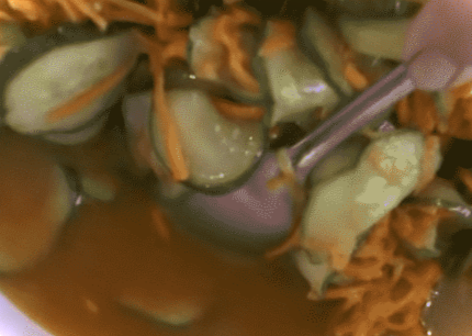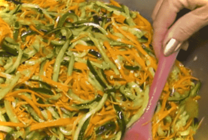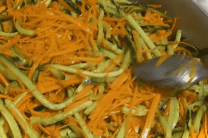 Цей салат вам точно сподобається, трохи гострий за рахунок корейської приправи, не калорійний, але із хлібом і голод вгамує. Його зручно взяти в похід, на дачу або просто виставити на закуску, коли прийдуть до вас гості. Для його приготування можна взяти молоді або плоди, що переросли, а також з якимись пошкодженнями, які можна обрізати, а решту плоду пустити в справу.