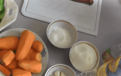 Моркву та огірки перекладаємо в каструлю, туди ж додаємо часник.