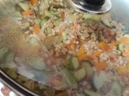 Насамперед промийте перловку і поставте її варитися. Її можна приготувати як на плиті, так і в мультиварці.