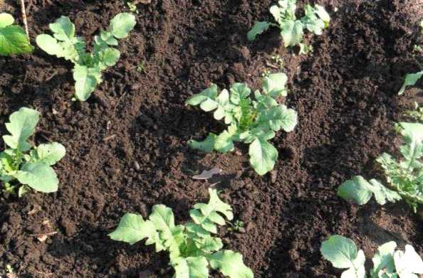 Редька садиться також у квітні. Не боїться ця культура короткочасних заморозків. Редька любить поживний та удобрений ґрунт. При посіві відстань між рослинами повинна становити не менше 20 сантиметрів.