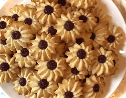 Таке печиво ми часто пекли у дитинстві, тому що його готувати було дуже просто. Щоправда, тоді не було міксерів та блендерів, робили тісто вручну. Було дуже цікаво пропускати тісто через м'ясорубку, отримуючи дуже гарні квіточки – хризантеми. А зараз за допомогою кухонних гаджетів готувати його стало набагато зручніше та швидше.