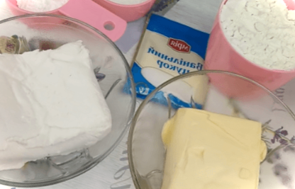 Якщо сир сухий або крупнозернистий, його потрібно протерти через сито або подрібнити блендером.Тісто, що відпочило, дістаємо з холодильника, відрізаємо від нього невеликий шматок, і розкочуємо качалкою з нього пласт. Розрізаємо на кілька смужок шириною 5 см.