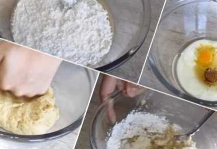 За бажанням до тіста можна додати ванільний цукор.Поступово, просіюючи через ситечко, додаємо партіями борошно, і щоразу перемішуємо до однорідності маси. Продовжуємо додавати борошно доти, доки тісто перестане прилипати до рук.