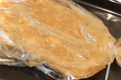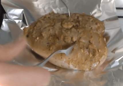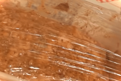 Через кілька годин дістаємо грудку з каструлі і перекладаємо її на лист з фольгою і загортаємо щільно з усіх боків.