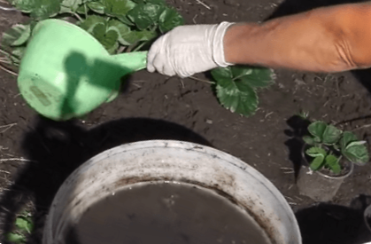 Для підживлення роблять настій. Для цього на 10 л води беруть 1 склянку порошку просіяного і добре перемішують. Залишають на добу для наполягання. Перед підживленням полийте водою грядку з полуницею, а потім під кожен кущик налийте приблизно по 0,5 л настою. Після підживлення ґрунт під кущами розпушіть.