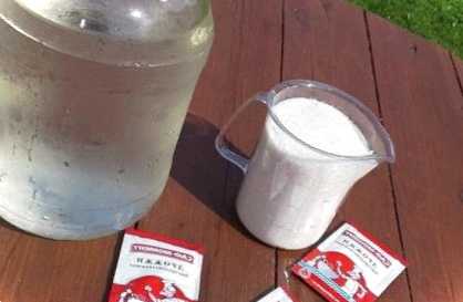 Якщо не виявилося пресованих, можна приготувати маточний розчин їх сухих дріжджів. З цією метою 1 пакетик (10 г) спочатку розлучається в невеликій кількості теплої води (0,5-1 л), додається 2-3 ст. л. цукру, ретельно все розмішується. І так само опара забирається для бродіння на ніч у тепле місце. Потім одержану закваску додають у 10 л води.