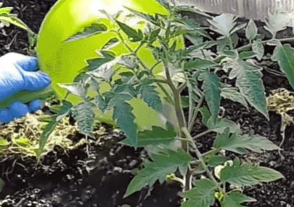 З маточного готуємо робочий розчин. Для цього 1 л маткового розчину розводимо у 5 л води. Не забуваємо, що вода має бути теплою. Отриманим розчином поливаємо рослини під корінь із розрахунку 1 л на одну рослину.