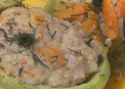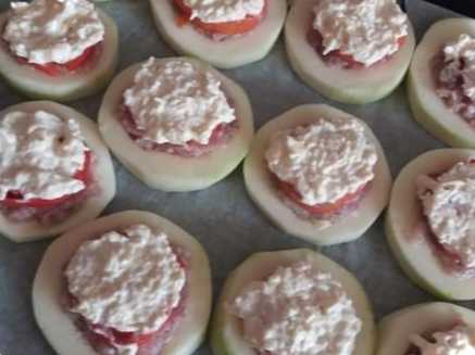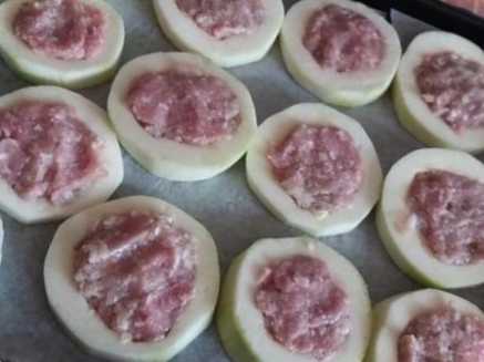 Кабачки кружальцями, фаршировані та запечені в духовці