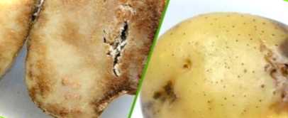 На розрізі хворих на картоплин видно ділянки ураженої тканини. Такий овоч вже не придатний для харчування, а при зберіганні він починає швидко гнити і вражати гниллю сусідні бульби.