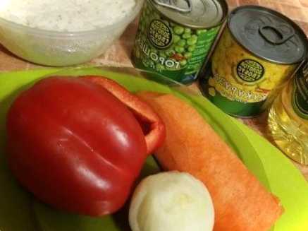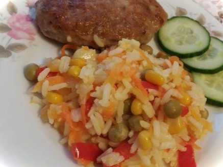 Готове блюдо виглядає просто приголомшливо! Білий рис разом із помаранчевою морквою, червоною цибулею, жовтою кукурудзою та зеленим горошком, виглядає ошатно та дуже апетитно! А щіпка спецій додасть гарніру приємної нотки.
