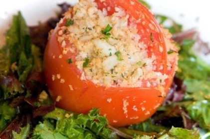 Помідори можна фарширувати м'ясом, таким як яловичий фарш або баранина, та приправленим рисом. Це більш ситна страва та вражаючий гарнір до будь-якого свята. Для корпоративу можете використовувати чотири сири: витриманий ароматний чеддер, горіхова та вершкова фонтину, гострий солоний пармезан та солодка плавлена моцарелла – всі чудово поєднуються. У поєднанні з панірувальними сухарями для відмінної хрусткої начинки, цим сирним помідорам важко встояти. Подавайте зі смаженим стейком, запеченою куркою чи смаженою рибою.