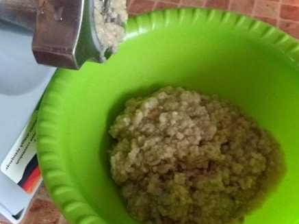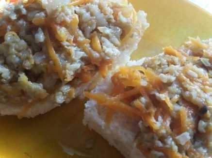Якщо гриби дуже солоні, рекомендую їх спочатку замочити у воді 30 хвилин. Після чого віджати від води та пропустити через м'ясорубку.