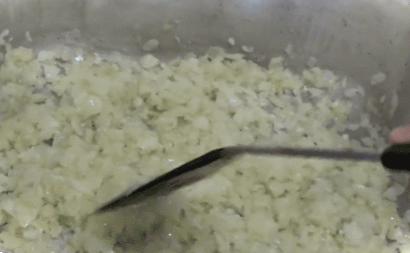 Цибулю очистіть і дрібно поріжте. На сковороду налийте трохи олії та обсмажте цибулю до золотистого кольору.