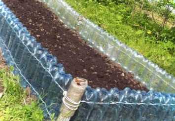 Кожен дачник знаходить свій спосіб зробити грядки з пластикових пляшок своїми руками фото яких ви можете знайти в інтернеті. Але більшість йде за однією і тією ж технологією. Ви можете користуватися таким способом створити оригінальні грядки: