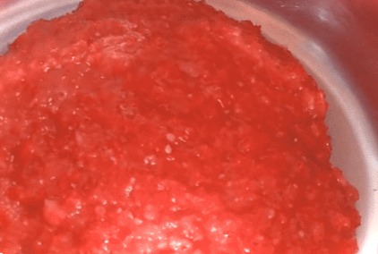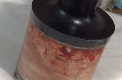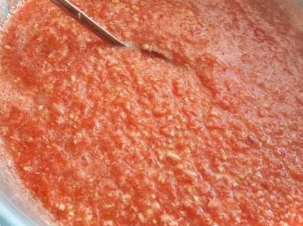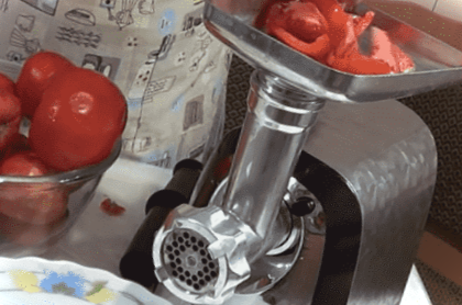 Помідори подрібнюємо в блендері або на м'ясорубці і виливаємо в чистий посуд.