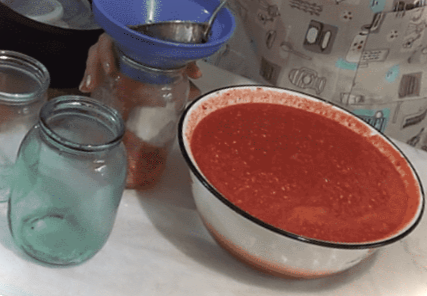 - Готову гарячу суміш розливаємо в стерилізовані банки, відразу ж закочуємо кип'яченими кришками, а потім залишаємо під товстим пледом до повного остигання банок.