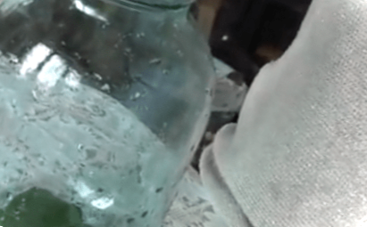- Готуємо розсіл. На 1,5 л води додаємо 3 ст. л. солі, доводимо до кипіння. Киплячою водою, дотримуючись обережності, щоб самим не ошпаритися, заливаємо огірки. Додаємо оцет. І закриваємо банку поліетиленовою кришкою.