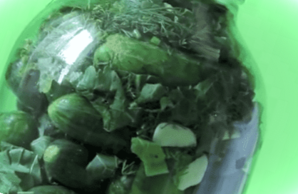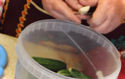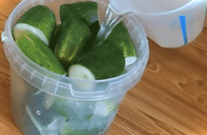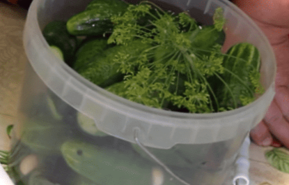 Джерело: https://youtu.ru/qMnWOXPq17sКоли рідина повністю охолоне, відерце прибираємо на ніч у холодильник. А на завтра у вас вже будуть смачні та хрусткі огірочки.