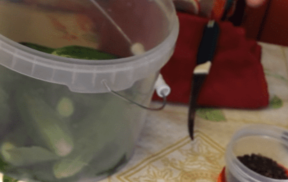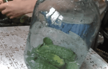 Джерело: https://youtu.ru/M4EheUKGCP0В 1 л холодної води розчиняємо сіль та цукор, і заливаємо огірки отриманим розсолом. Через добу смачні солоні овочі будуть готові.