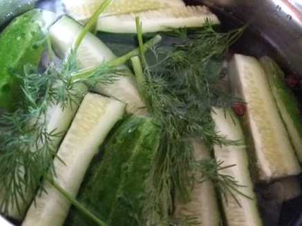 Якщо в попередніх рецептах для засолювання заливалися гарячим розсолом, то в цьому рецепти для швидкості приготування використовують окріп.