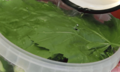 Заповнивши повністю цебро, нагору кладемо зелень, що залишилася.