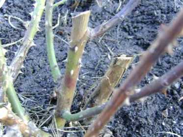 - Обрізайте батоги тростини навесні, а не восени. Дезінфікуйте різальні інструменти після використання на хворій рослині в розчині 1 частини побутового відбілювача на дев'ять частин води.