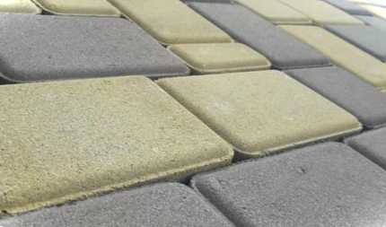 - Вібропресована. Виробник заповнює форму сумішшю, після чого запускає верстат. Форма знаходиться на вібраційній плиті, а зверху на неї тисне багатотонний прес. В результаті виходить щільна структура тротуарної плитки, яка здатна служити більш ніж 25 років. Так як дана плитка виходить надзвичайно щільною і виробляється в сухому вигляді, вона має високі технічні характеристики. Тут хороший показник морозостійкості, переносимість великих навантажень, висока стійкість до механічних пошкоджень. При цьому такий вид бруківки доступний за ціною. Проблема тільки в тому, що колірних рішень тут не так багато, в більшості випадків плитка виходить сірою, якщо пігменти і вводяться, то яскравого відтінку досягти неможливо.