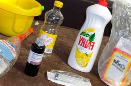 Для цього знадобиться 9% оцет, кухонна сіль та миючий засіб для посуду.