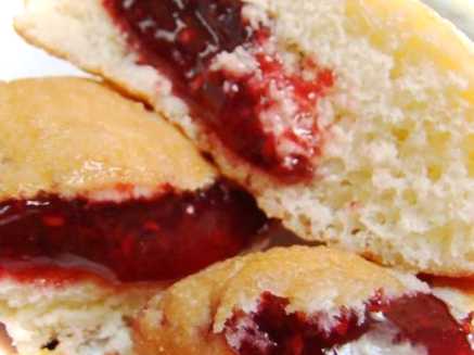 - Вийняти виріб і дати йому охолонути протягом 10 хвилин, потім рівномірно розподілити на поверхні малинове варення, залишивши по краю незаповнену смугу шириною 2-3 см.