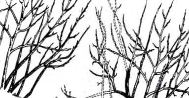 На старіших кущах вирізують старі гілки, що дають малий приріст пагонів. На зрізаному місці з пенька потім виростуть молоді пагони, з них залишають найсильніший. Якщо стара гілка дала сильні молоді пагони зі своєї середини, тоді можна видалити її стару верхівку, давши місце для розвитку молодих пагонів.