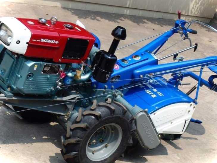Таке обладнання для дачної ділянки має потужність близько 10 кінських сил, але у продажу можна зустріти моделі з потужністю до 18 кінських сил. По суті це такий самий мінітрактор, але з деякими відмінностями. Тут немає другої пари коліс, немає місця для розміщення людини.