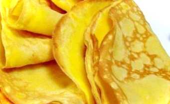 - Готове тісто наливаємо на розпечену сковороду та випікаємо млинці з одного та іншого боку.
