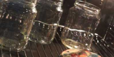 Налийте в банки трохи води та увімкніть мікрохвильову піч на максимальну потужність. Як тільки вода в банках закипить (приблизно через 3-5 хвилин), вимикайте піч. Акуратно виймаємо банки і знову ставимо сушитися на чисту тканину.
