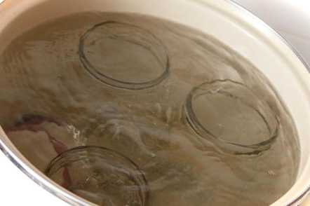 Банки поставте або покладіть у каструлю. Повністю залийте їх водою. Кип'ятіть їх від 10 хвилин до півгодини. Знову ж таки це залежить від розміру банок.