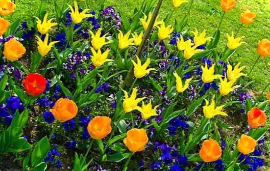 - Контрастні - тут навпаки, висаджуються квіти по сусідству у тому випадку, якщо вони мають протилежний колір. Жовті квіти розташовуються поруч із синіми, зелені з червоними, блакитні з рожевими тощо. д. В результаті виходить яскрава та контрастна композиція на ділянці, що створює особливу атмосферу. Даний вид квітника краще робити більшим, дуже часто технологію використовують міські ландшафтні дизайнери, створюючи композиції у парках та на площах.