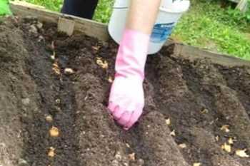 Після того, як цибулини розклали, борозенки засипають зверху родючою землею або компостом до рівня краю борозенок, над цибулинами має бути земля 3-4 см . Занадто дрібна посадка веде до вимерзання цибулини взимку, надто глибока – може не дати ніжному перу пробитися крізь товщу землі. Цибулина може випріти або вимокнути навесні.